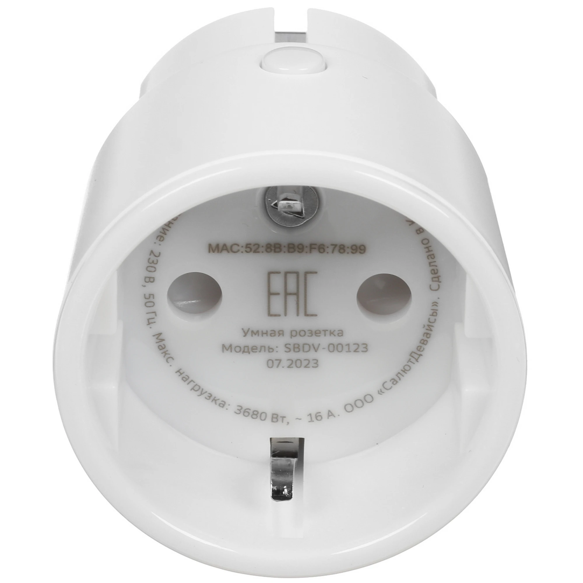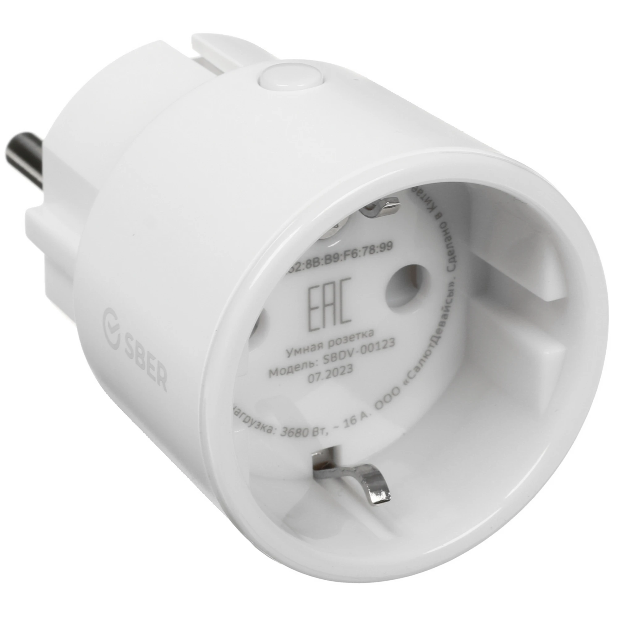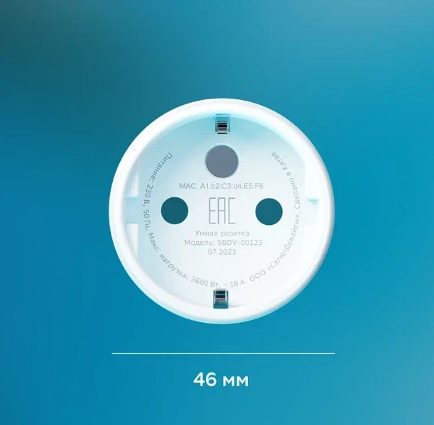Умная розетка Sber SBDV-00123 – функциональная модель с круглой формой корпуса и размерами 45x70 мм, которая не будет загораживать соседние розетки и позволит с комфортом пользоваться ими. С помощью этого устройства можно подключить к энергосети прибор и удаленно контролировать его работу посредством мобильного приложения Сбер Салют. Оно поддерживает установку сценариев функционирования техники в зависимости от дня недели и времени суток. Мобильное приложение также предоставит пользователю информацию о текущем напряжении в электросети и энергопотреблении прибора.
