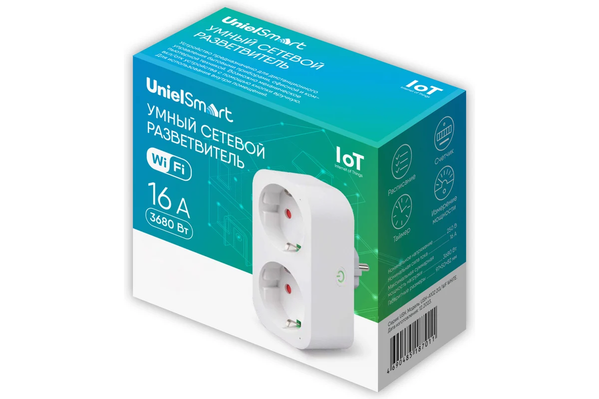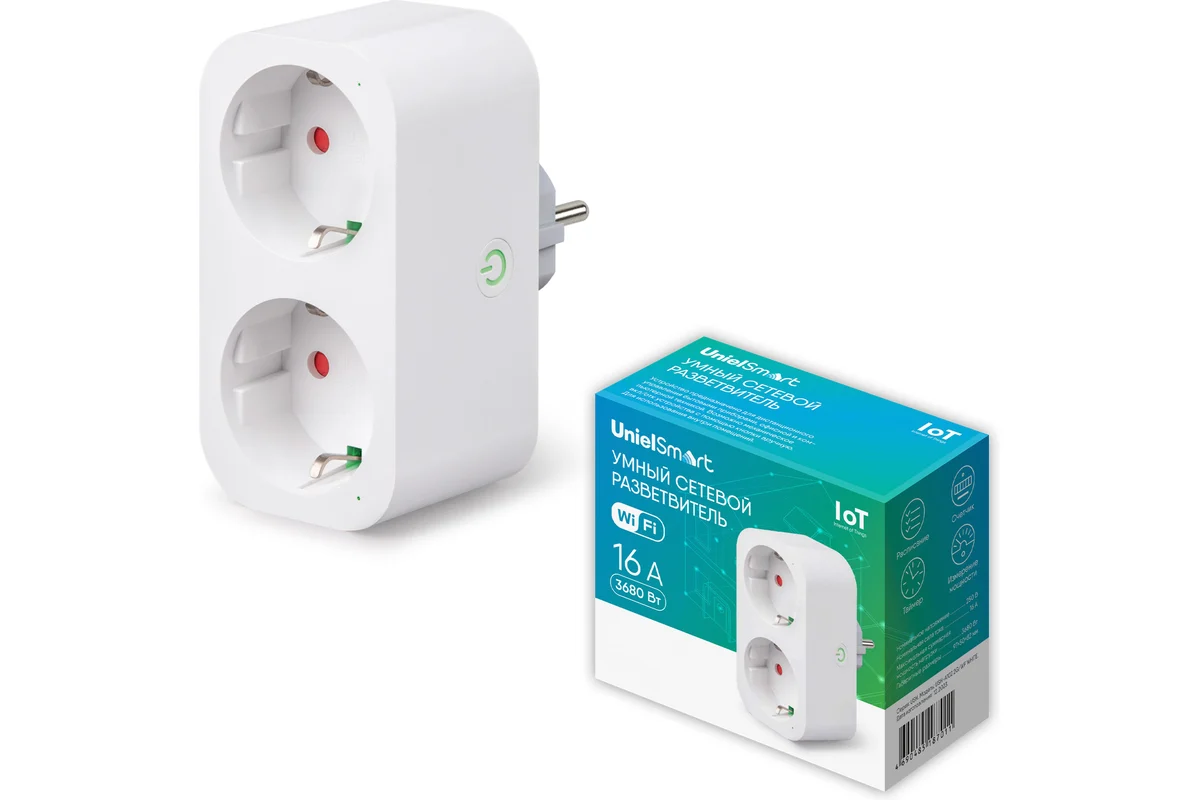 Управление розеткой осуществляется через удобное приложение UnielSmart или голосовые команды. Вы получаете полный контроль над подключёнными устройствами: включаете и выключаете их, создаёте собственные сценарии работы и настраиваете автоматическое включение по расписанию.
