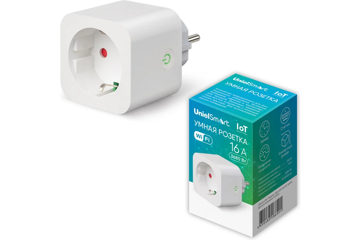 Управление розеткой осуществляется через удобное приложение UnielSmart или голосовые команды. Вы получаете полный контроль над подключёнными устройствами: включаете и выключаете их, создаёте собственные сценарии работы и настраиваете автоматическое включение по расписанию.