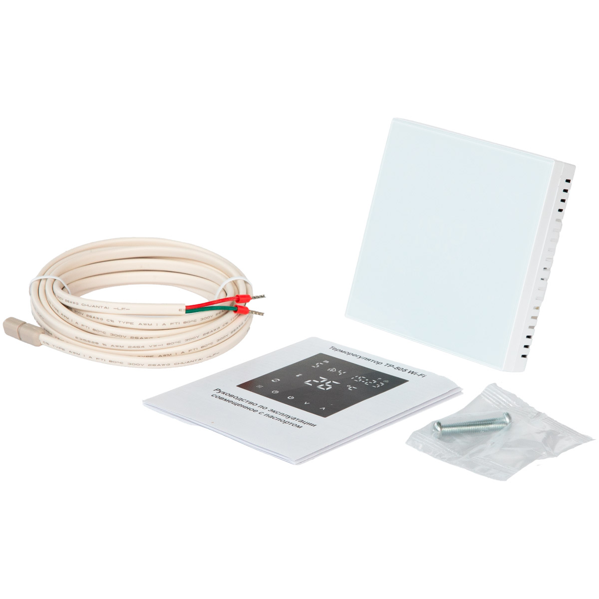 Цифровой терморегулятор Русское тепло ТР-505 7730691 белого цвета с сенсорным дисплеем 120 мм и управлением по Wi-Fi.