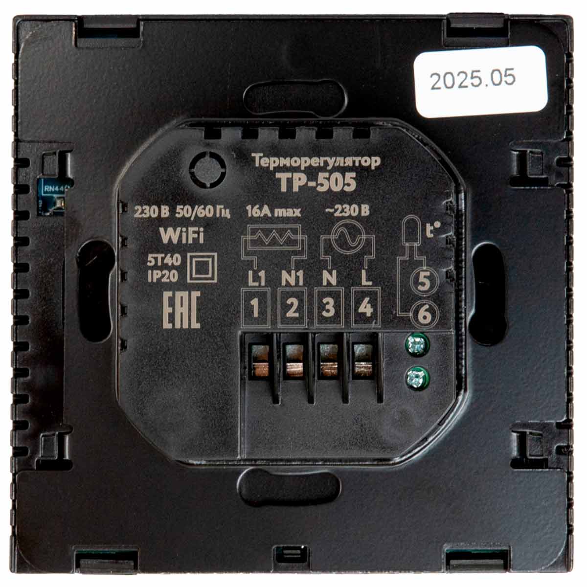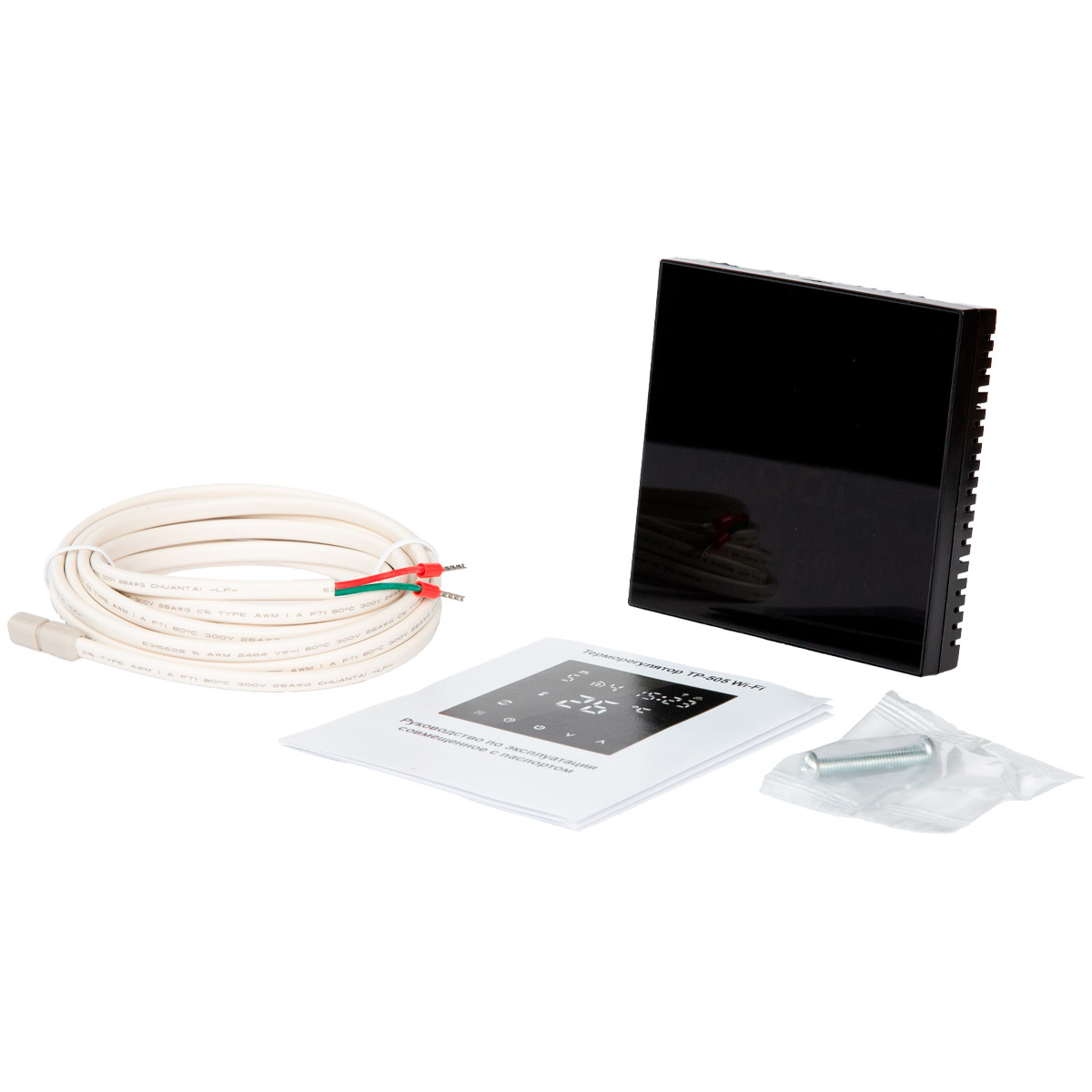 Цифровой терморегулятор Русское тепло ТР-505 7730691 черного цвета с сенсорным дисплеем 120 мм и управлением по Wi-Fi.