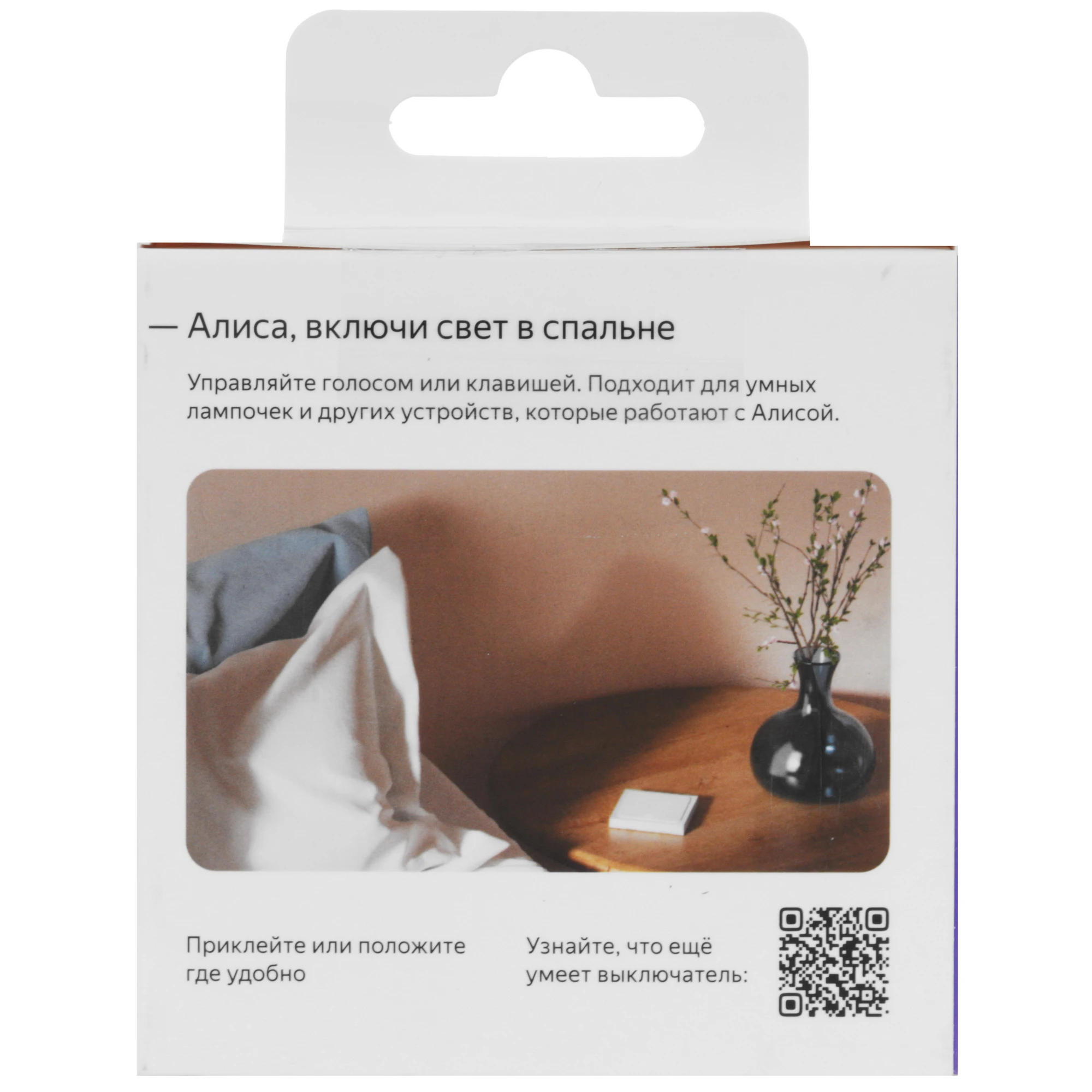 Вы можете разместить его возле кровати для бесшумного управления светом или шторами, не обращаясь к Алисе, или в прихожей, чтобы включать весь умный свет в квартире одним нажатием.